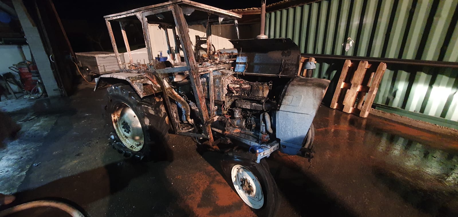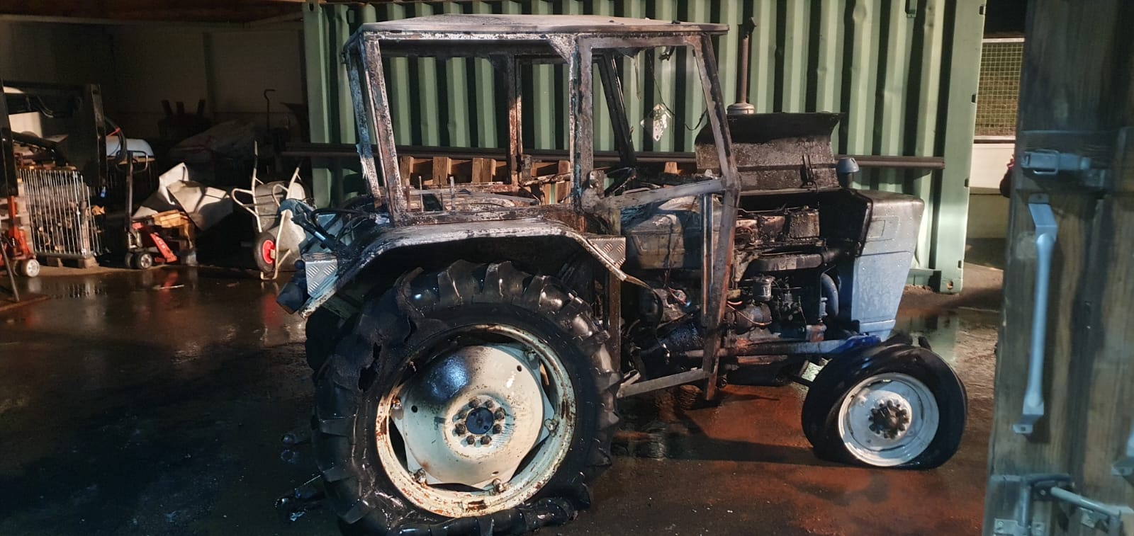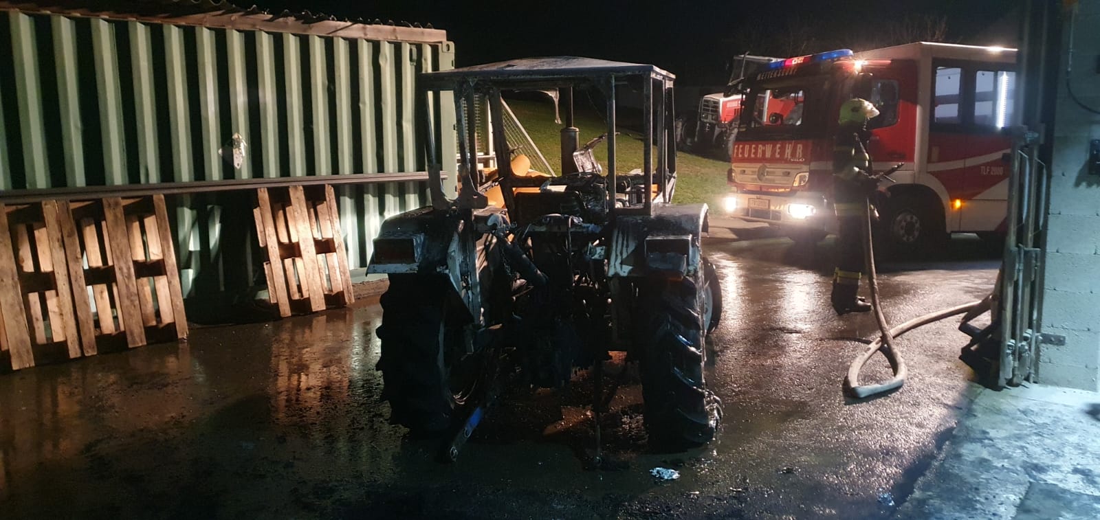 Kurz vor 23 Uhr bemerkte der Besitzer des Traktor, dass dieser zu brennen begann.
