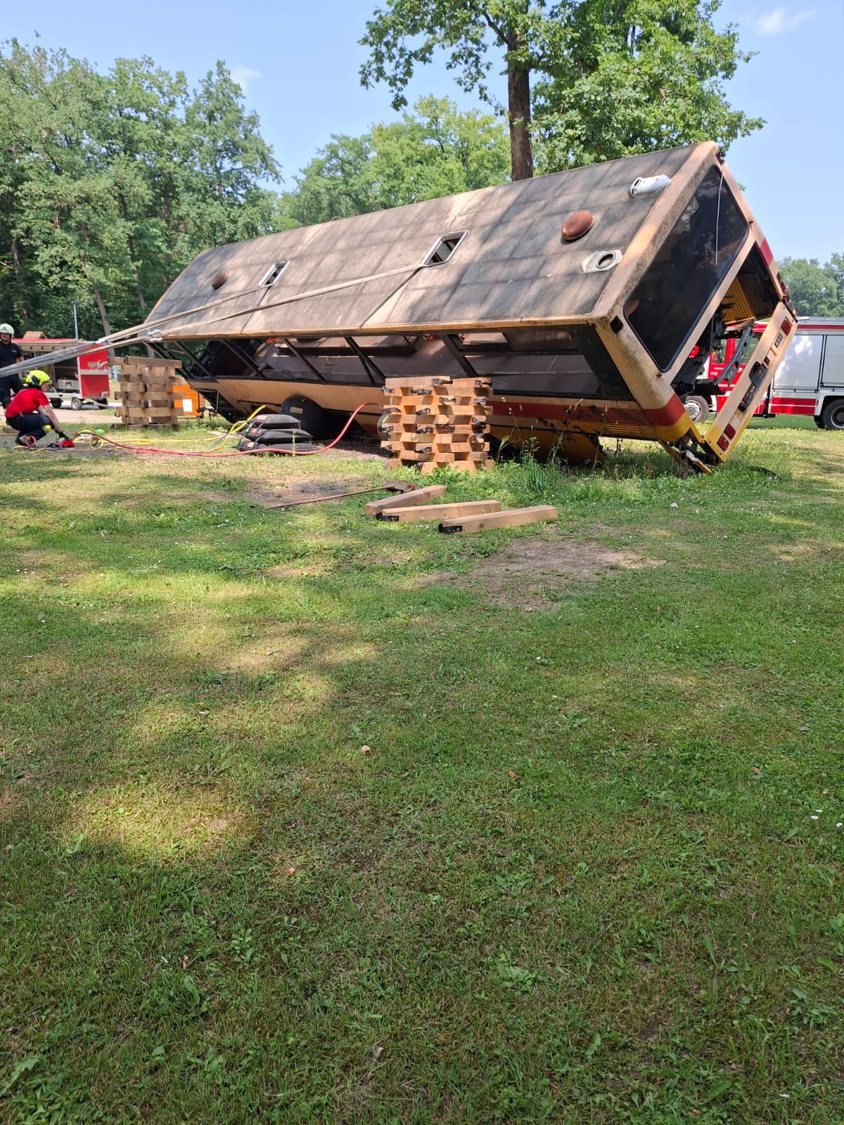 Der Kurs umfasste anspruchsvolle Themen im Bereich der technischen Hilfeleistung. Dazu gehörten das Stabilisieren von Pkw, das Heben von Lasten mit pneumatischen Hebekissen, der Einsatz hydraulischer Rettungsgeräte, sowie verschiedene Menschenrettungsszenarien, unter anderem aus einem Lkw, von einem Kesselwagen und im Bahnbereich.