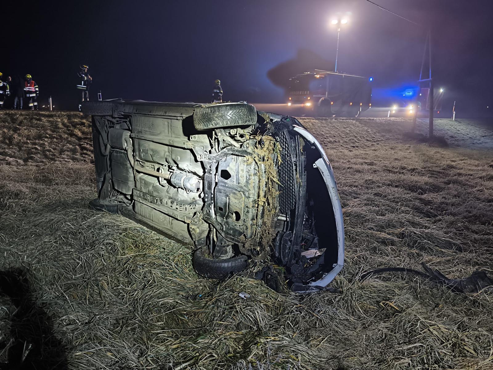 Kurz nach 5.30 Uhr verunfallte ein Pkw-Lenker aus der Gemeinde Stainz auf seinem Weg zur Arbeit auf der L617 in Wieselsdorf: Der PKW stürzte über die Böschung und überschlug sich nach Angaben des Fahrzeuglenkers mehrfach. Dabei wurde der Pkw erheblich beschädigt, zum Glück waren aber hauptsächlich die jeweils unbesetzte Beifahrerseite sowie die Rückbank des Autos betroffen. Der Platz des Lenkers verformte sich nicht so stark. So blieb der Unfalllenker unverletzt und konnte selbst aus dem Autowrack klettern sowie die Einsatzkräfte alarmieren.