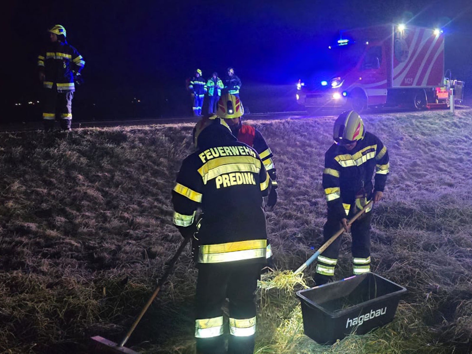 So war es an den Feuerwehren Wieselsdorf und Preding, die Unfallstelle zunächst abzusichern und in weiterer Folge das Fahrzeug für den Abtransport durch einen Abschleppdienst vorzubereiten. Dies wird im Laufe des heutigen Tages passieren. Auf einer Länge von rund 80 Metern wurden zahlreiche Autoteile in der Wiese eingesammelt.