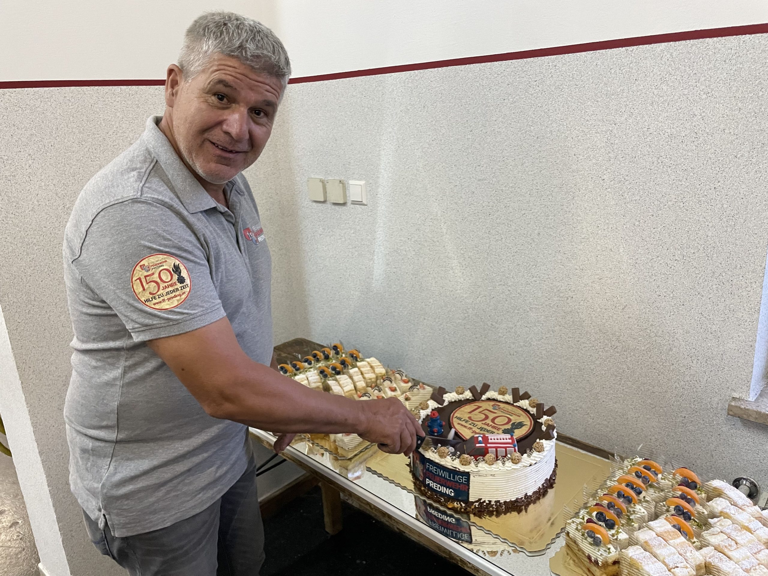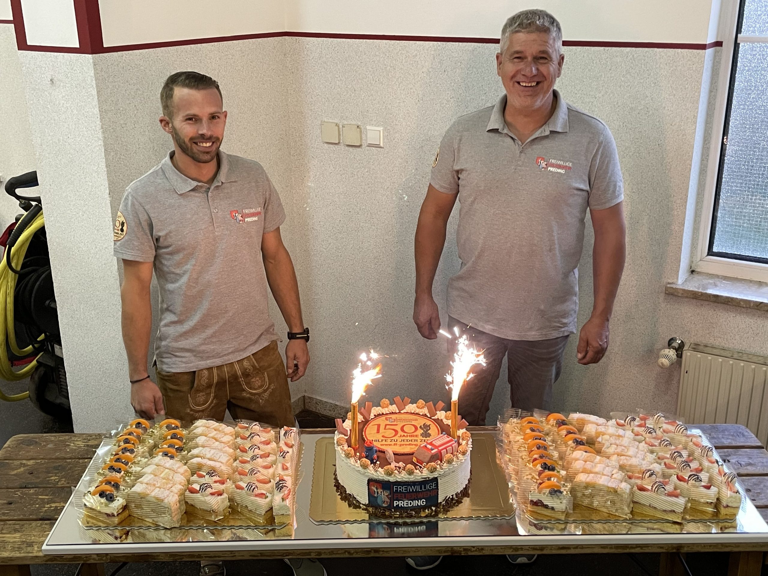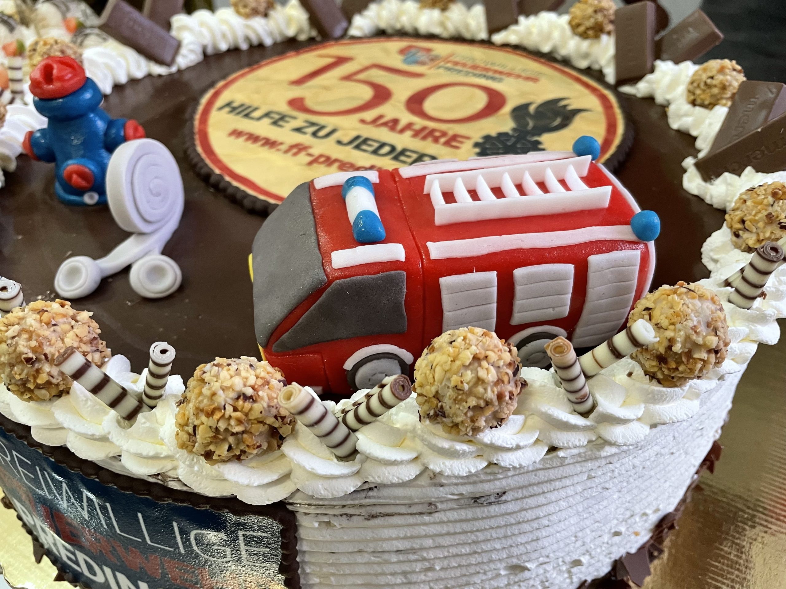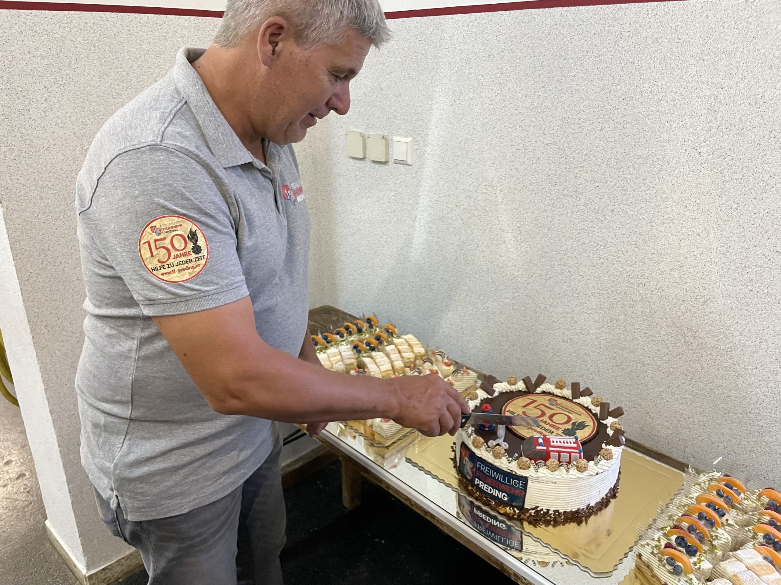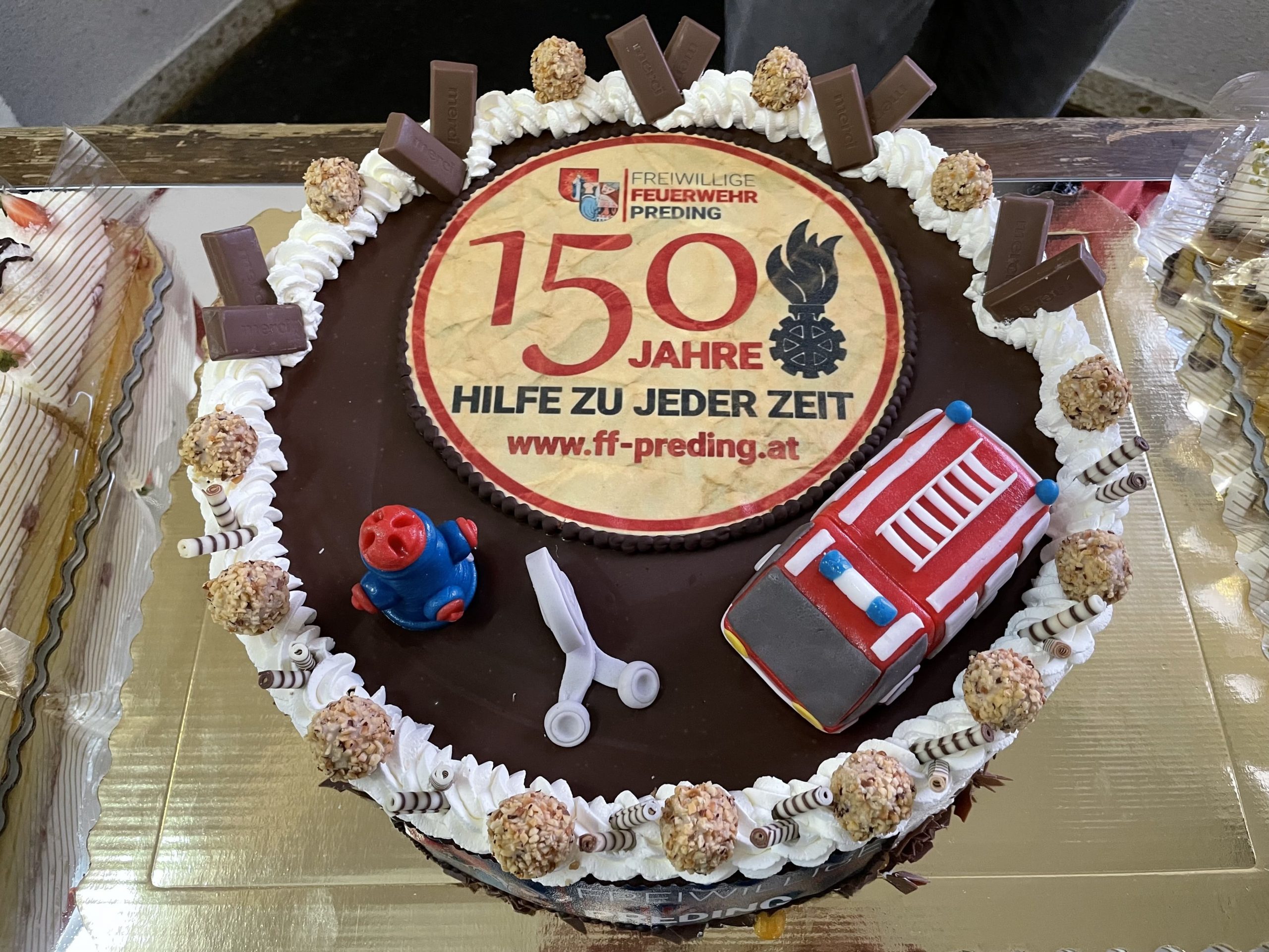 Exakt 150 Jahre und einen Tag, nachdem 21 Predinger Bürger am 11. August 1872 im Haus des Arztes Dr. Franz Trost die Freiwillige Feuerwehr Preding aus der Taufe hoben, feierten die „aktuellen“ Predinger Feuerwehrleute diesen Geburtstag: Bei einem gemütlichen Grillaben im Rüsthaus wurde so manche „alte Gschicht“ aus dem unermesslichen Reigen an Ereignissen zum Besten gegeben und in geselliger Runde eine Menge lustiger Anekdoten erzählt. Der Höhepunkt des Abends war definitiv die fantastische Geburtstagstorte, die von Konditorin Nicole Walter, der Frau unseres LM d.F. Robert Walter, in künstlerischer Weise gestaltet wurde. Die Ehre des Anschneidens wurde natürlich unserem Kommandanten HBI Fritz Sundl zuteil – und er musste rasch zur Tat schreiten, um der bereits auf die größten Tortenstücke lauernden Feuerwehrjugend zuvorzukommen. Der gemütliche Abend stellte sodann den offiziellen Schlusspunkt für unsere Aktivitäten rund um unser 150-Jahr-Jubiläum dar.
