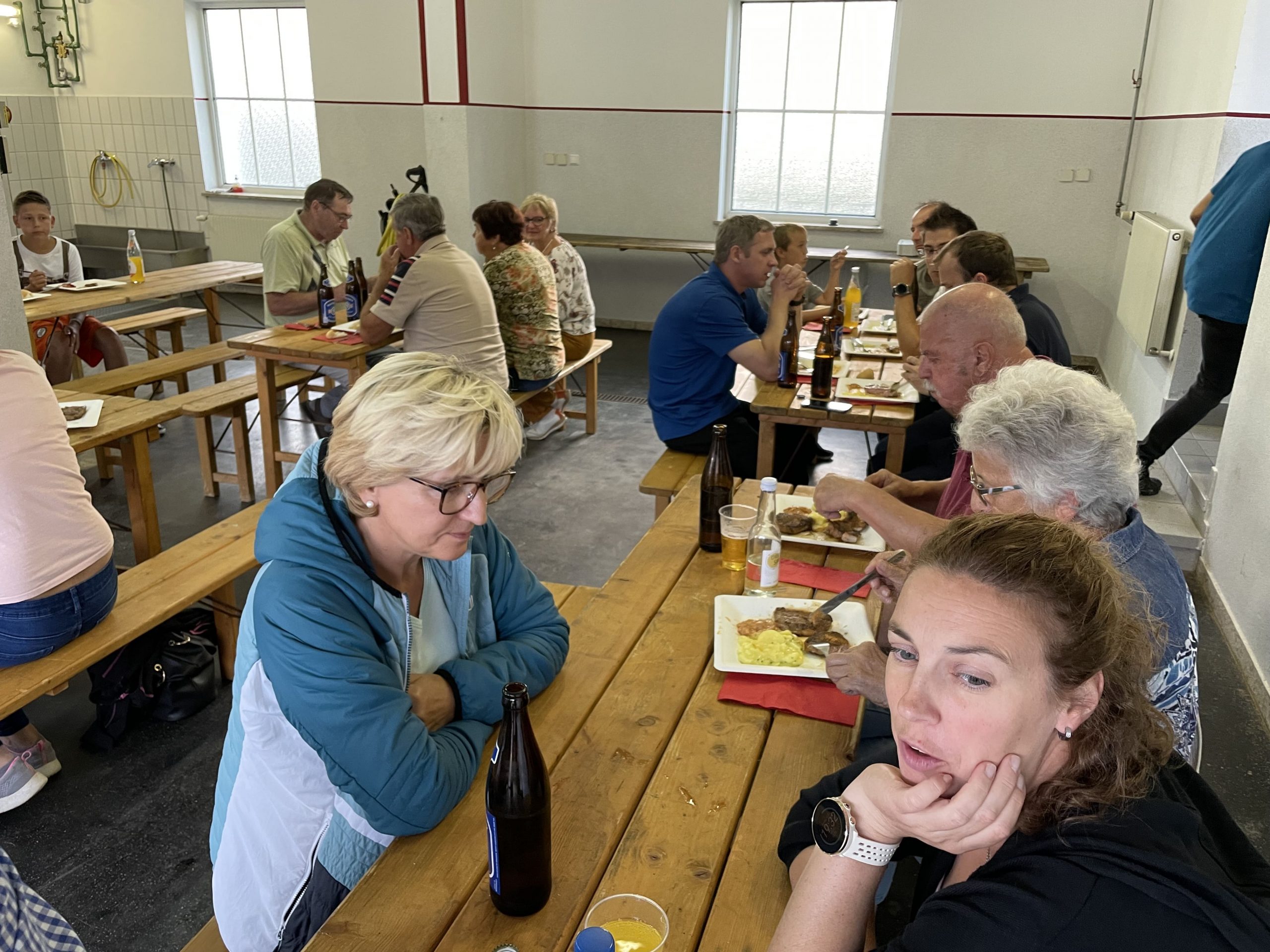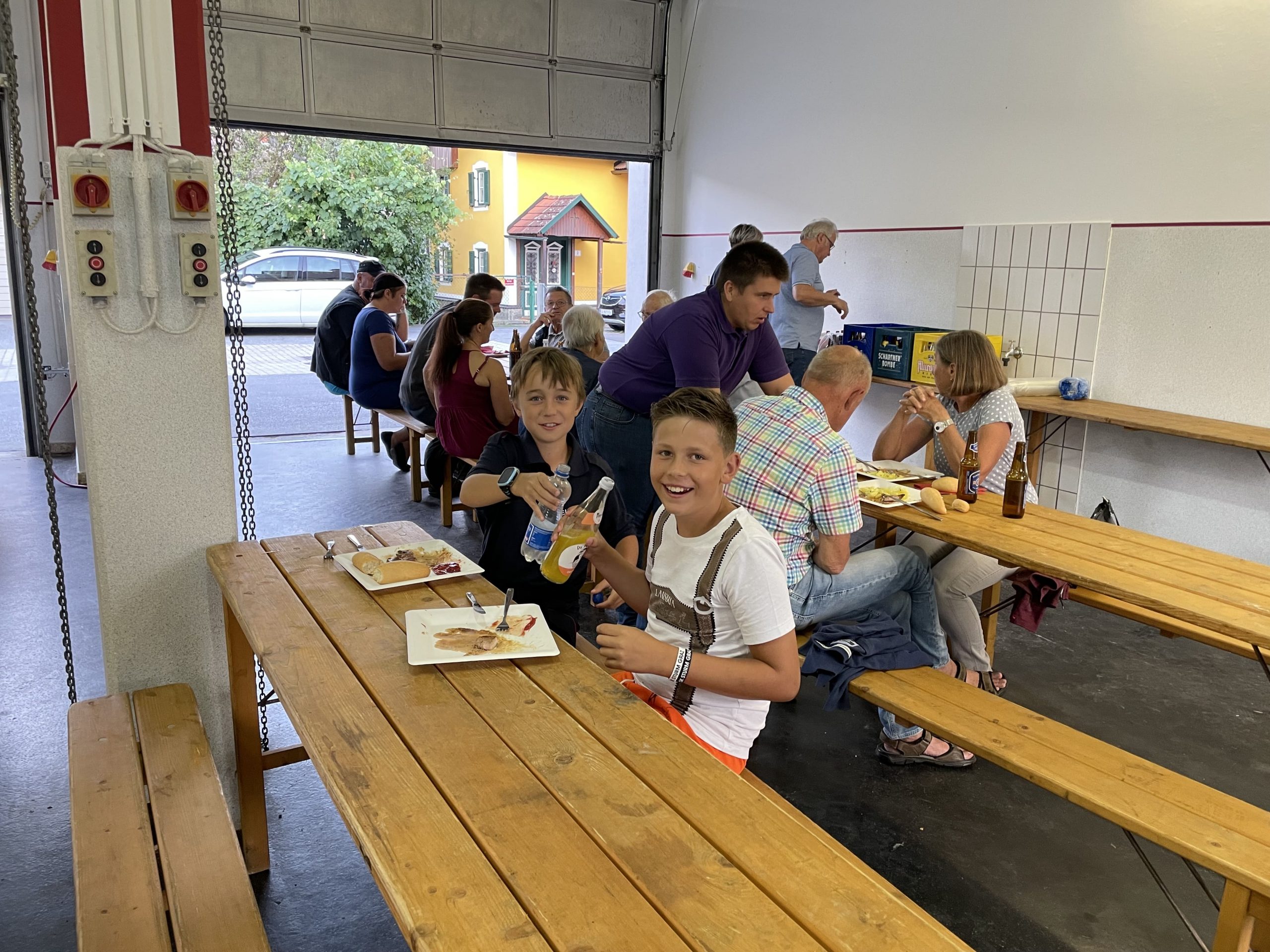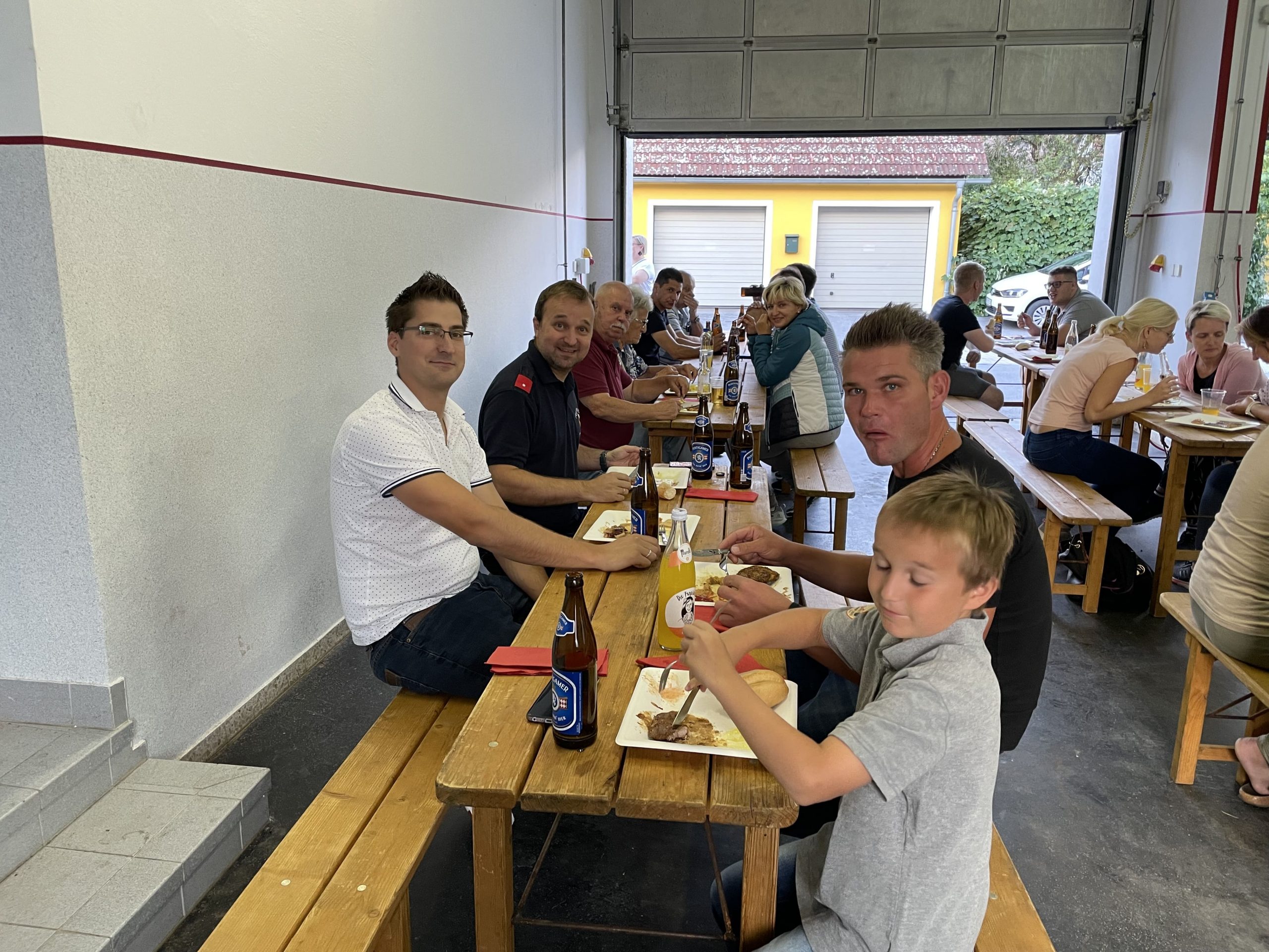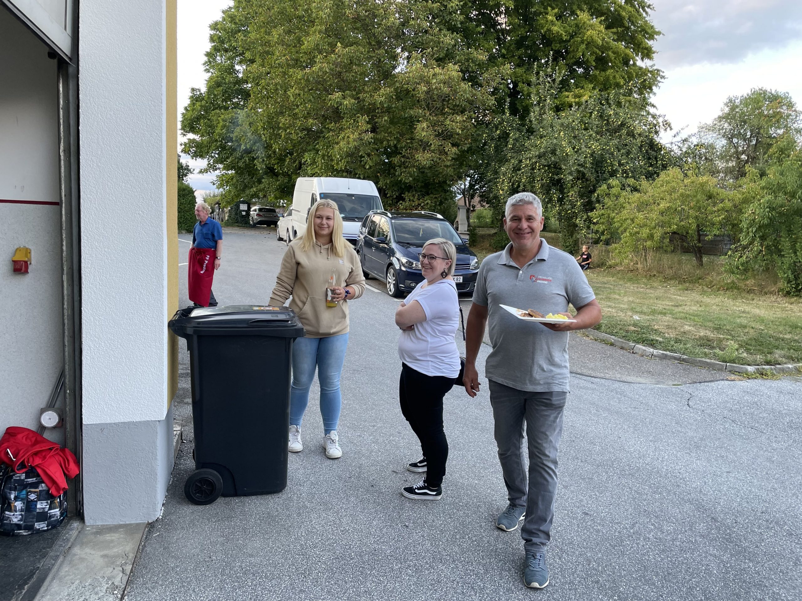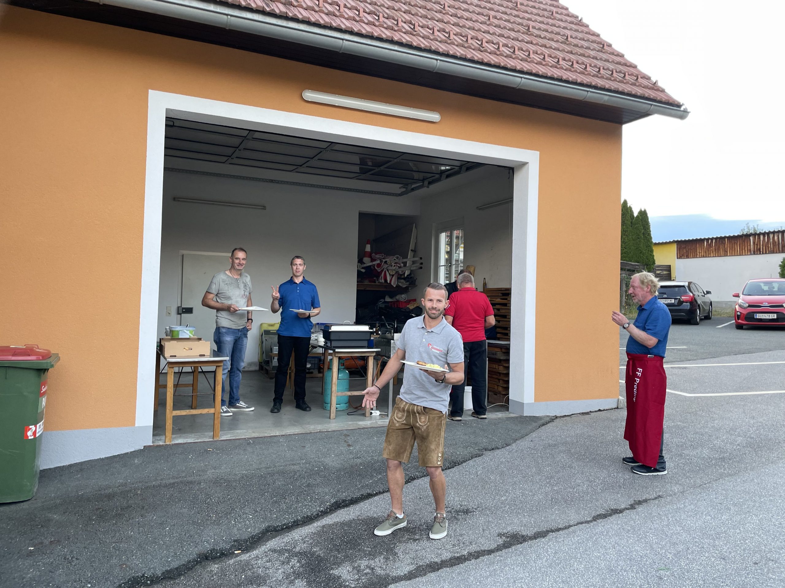 Exakt 150 Jahre und einen Tag, nachdem 21 Predinger Bürger am 11. August 1872 im Haus des Arztes Dr. Franz Trost die Freiwillige Feuerwehr Preding aus der Taufe hoben, feierten die „aktuellen“ Predinger Feuerwehrleute diesen Geburtstag: Bei einem gemütlichen Grillaben im Rüsthaus wurde so manche „alte Gschicht“ aus dem unermesslichen Reigen an Ereignissen zum Besten gegeben und in geselliger Runde eine Menge lustiger Anekdoten erzählt. Der Höhepunkt des Abends war definitiv die fantastische Geburtstagstorte, die von Konditorin Nicole Walter, der Frau unseres LM d.F. Robert Walter, in künstlerischer Weise gestaltet wurde. Die Ehre des Anschneidens wurde natürlich unserem Kommandanten HBI Fritz Sundl zuteil – und er musste rasch zur Tat schreiten, um der bereits auf die größten Tortenstücke lauernden Feuerwehrjugend zuvorzukommen. Der gemütliche Abend stellte sodann den offiziellen Schlusspunkt für unsere Aktivitäten rund um unser 150-Jahr-Jubiläum dar.