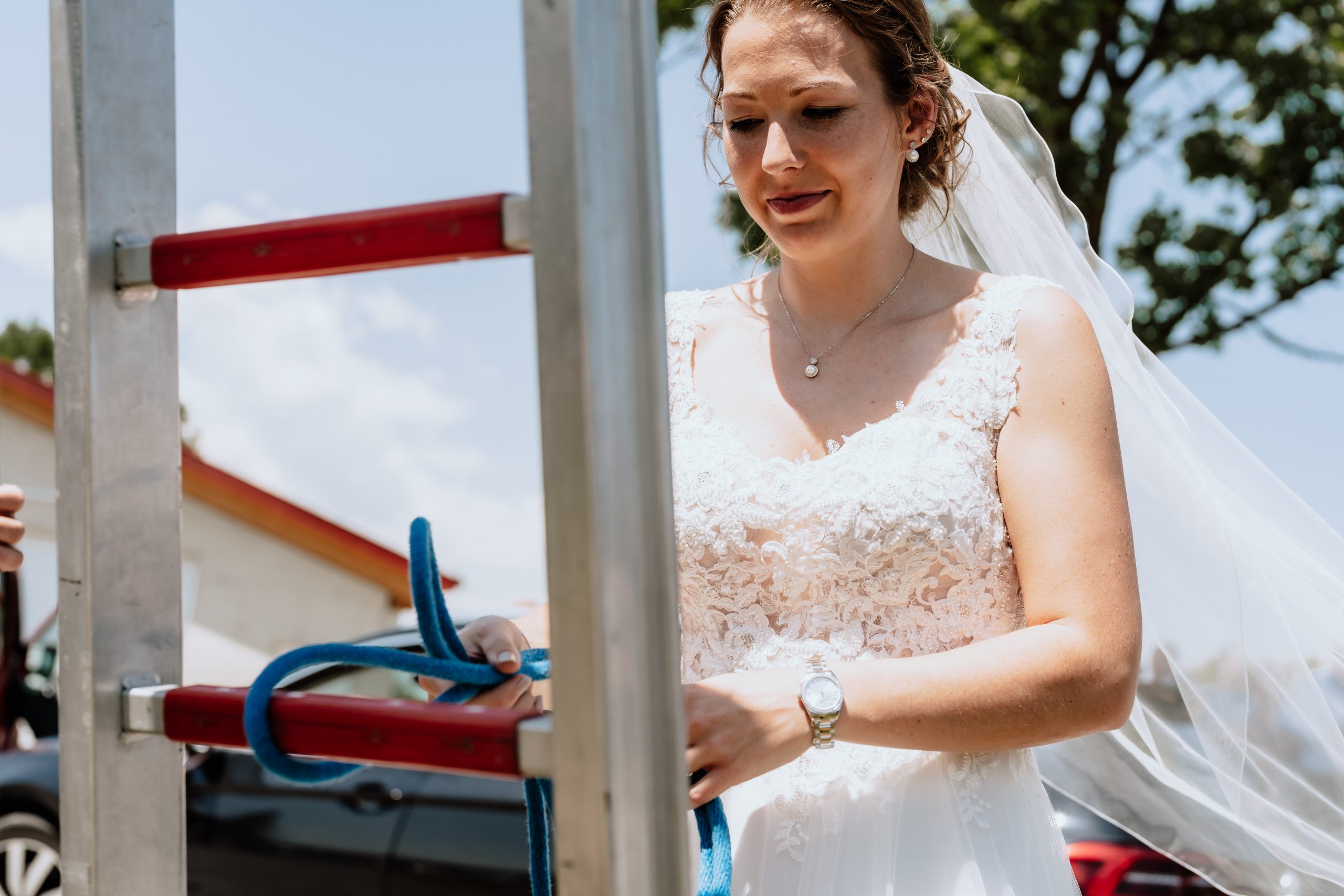 Das Brautpaar musste mehrere feuerwehrspezifische Aufgaben meistern. Alle gestellten Aufgaben wurden bravourös gemeistert.