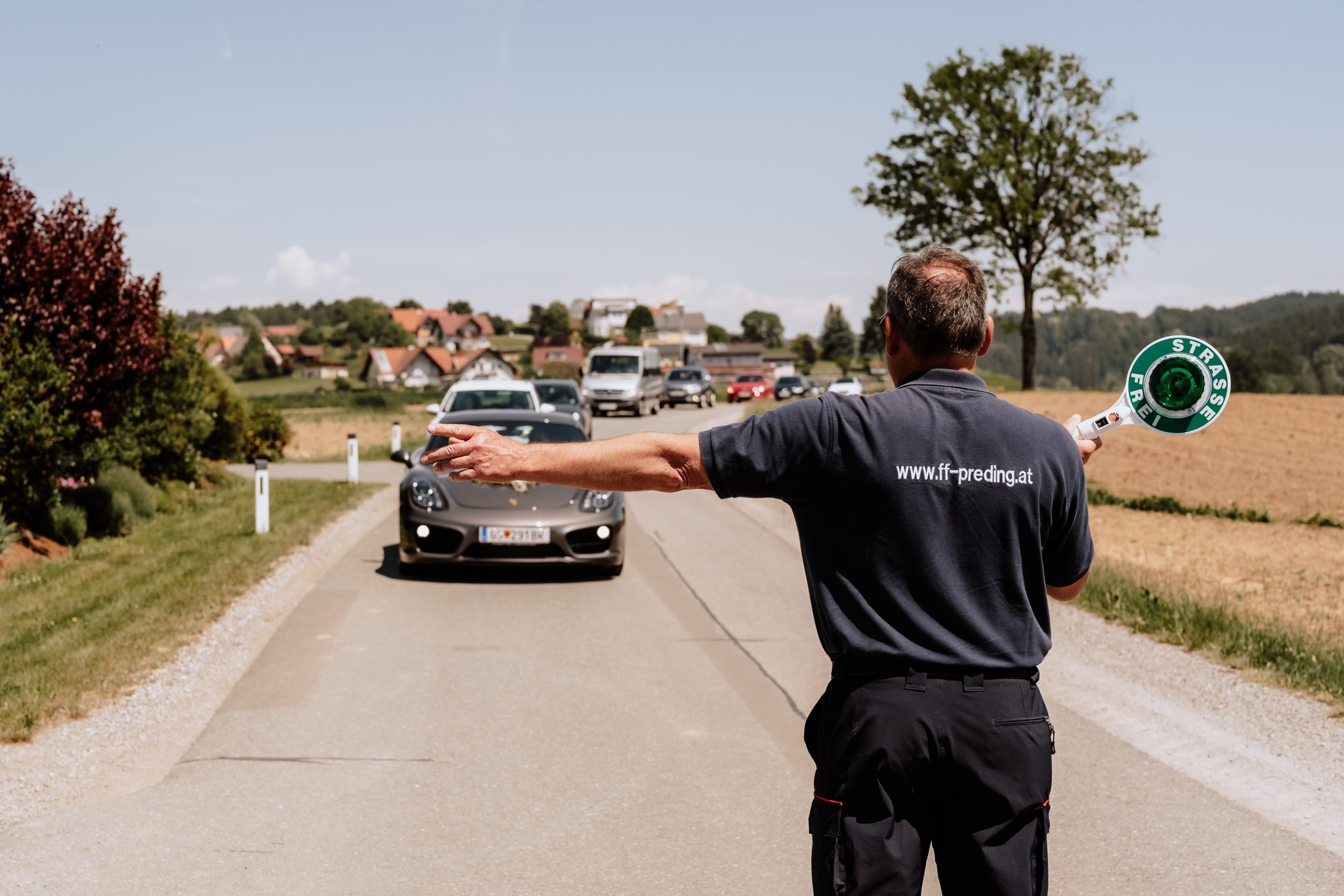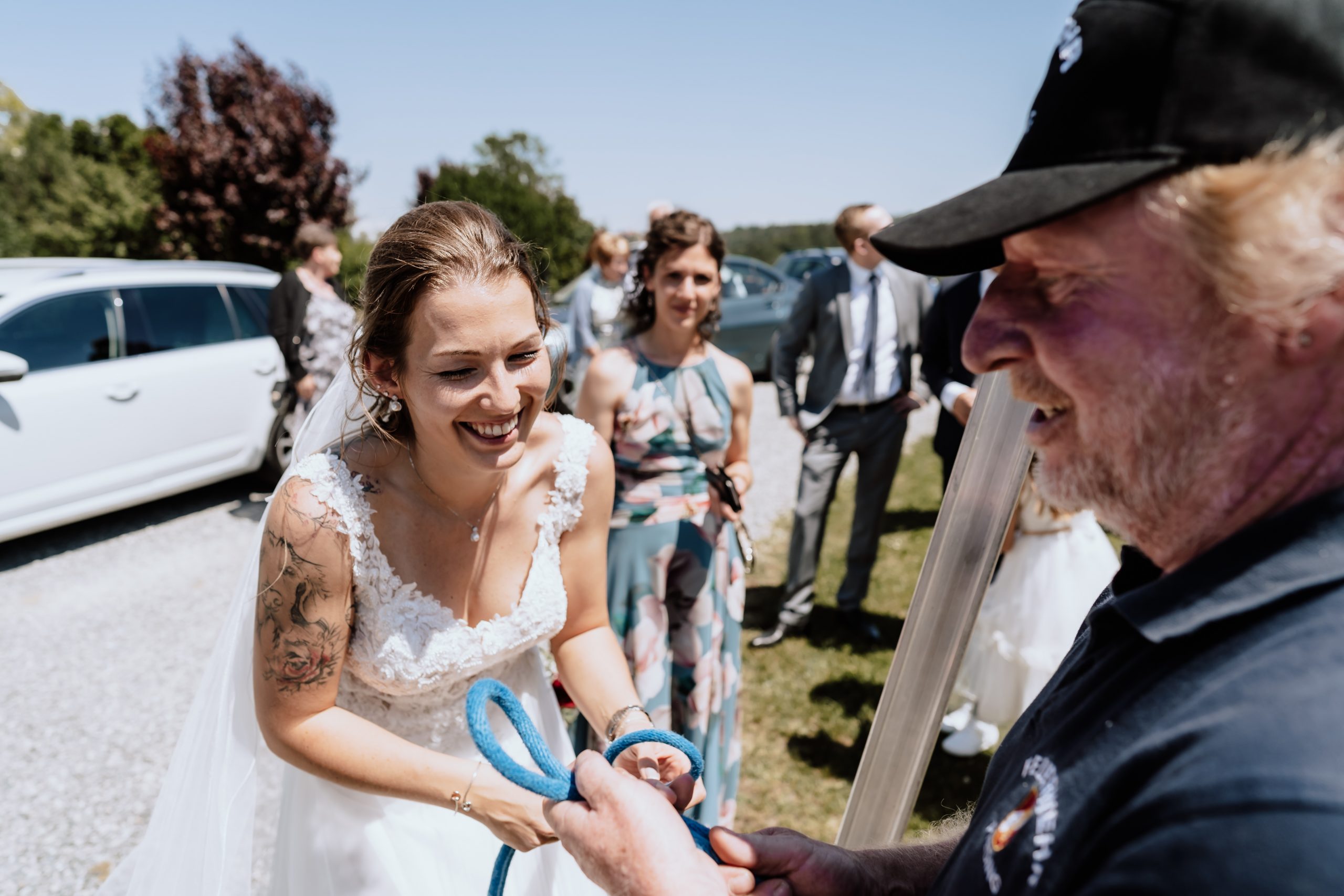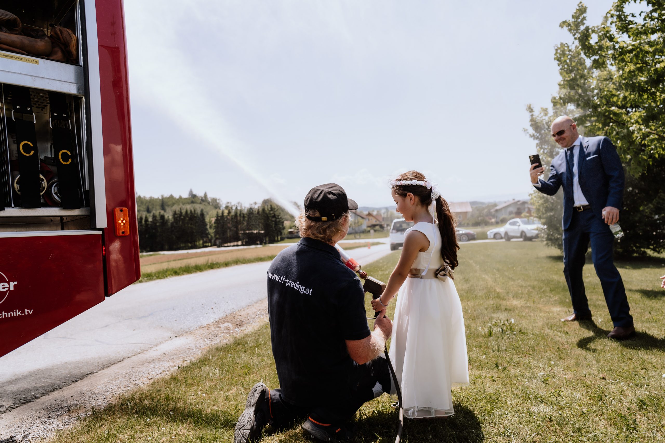 Das „Absperren“ auf dem Weg zur Hochzeitsfeier haben sich die Feuerwehr Preding natürlich nicht entgehen lassen.