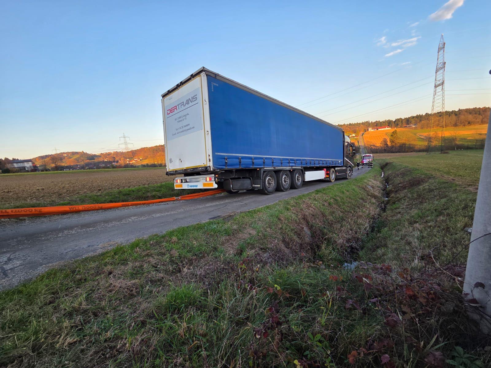 „Alarm für die Feuerwehr Preding: Sattelschlepper im Graben!“ Der Einsatzbefehl für die Kameradinnen und Kameraden der FF Preding ließ bereits bei der Ausrückung einen aufwändigen Einsatz erwarten – und dieser folgte auch, wenn auch zum Glück keine Personen oder Fahrzeuge zu Schaden kamen!