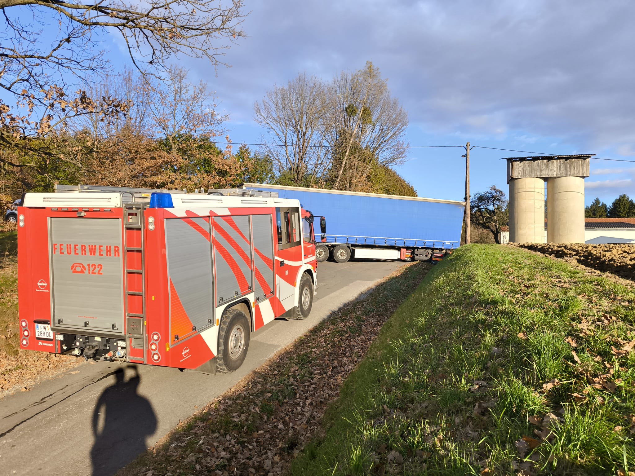 Der Sattelzug hat dabei keine Schäden davongetragen und der Lenker war sichtlich erleichtert, als er seine Fahrt fortsetzen konnte. So endete ein aufwändiger Einsatz der FF Preding nach rund zweieinhalb Stunden Arbeit glimpflich und mit Happy End.