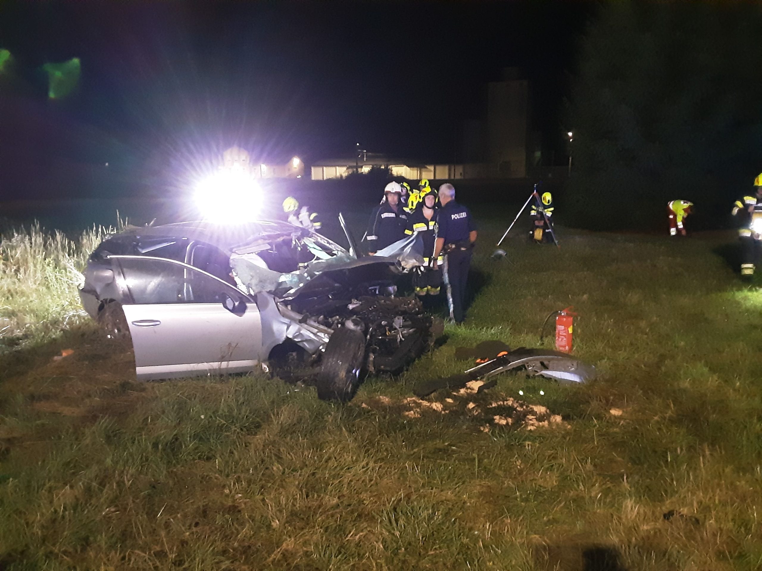 Zu einem schweren Verkehrsunfall kam es am Sonntagabend gegen 22:22 Uhr am Bahnübergang Preding-Wieselsdorf. Ein Pkw durchbrach aus bislang unbekannter Ursache die geschlossenen Bahnschranken und kam wenige Meter danach rechts von der Fahrbahn ab. Das Fahrzeug rammte einen Strommast, überschlug sich mehrfach – der Lenker wurde dabei aus dem Auto geschleudert und schwer verletzt.