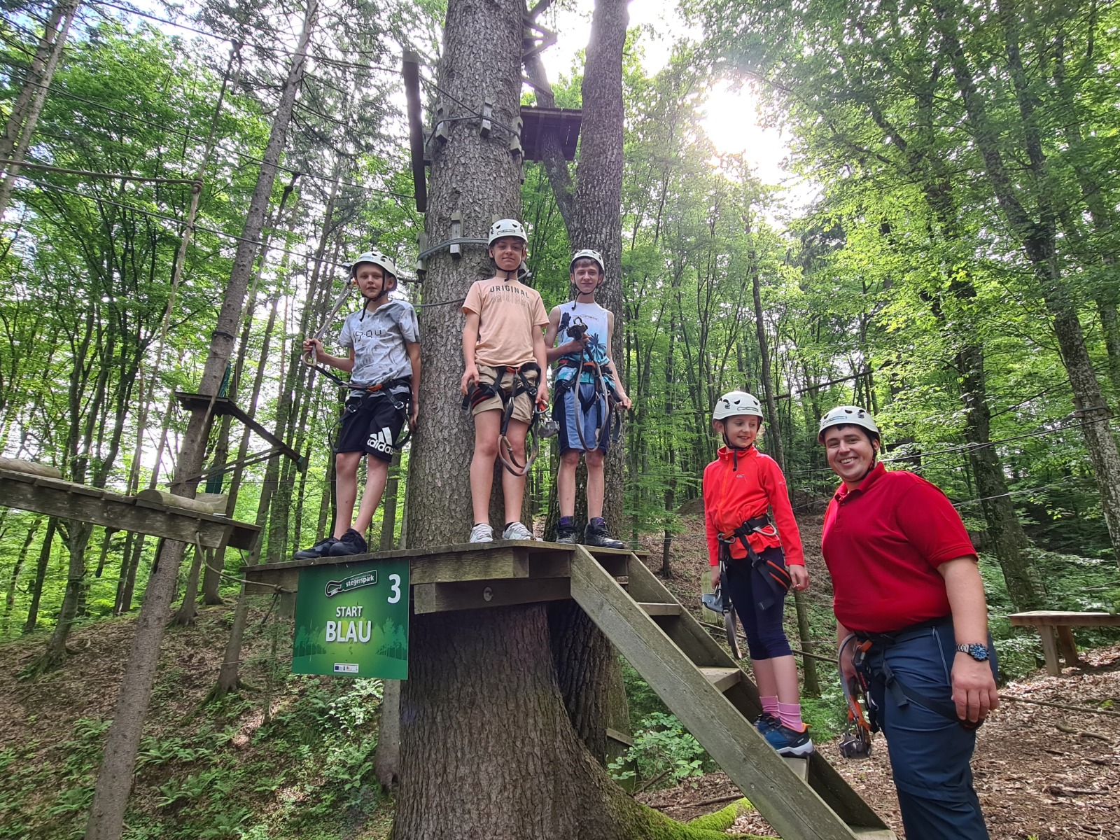 Dort verbrachten unsere Jugendmitglieder den Vormittag im Hochseilgarten wo es für den einen oder anderen an die Grenzen in der Höhe ging.