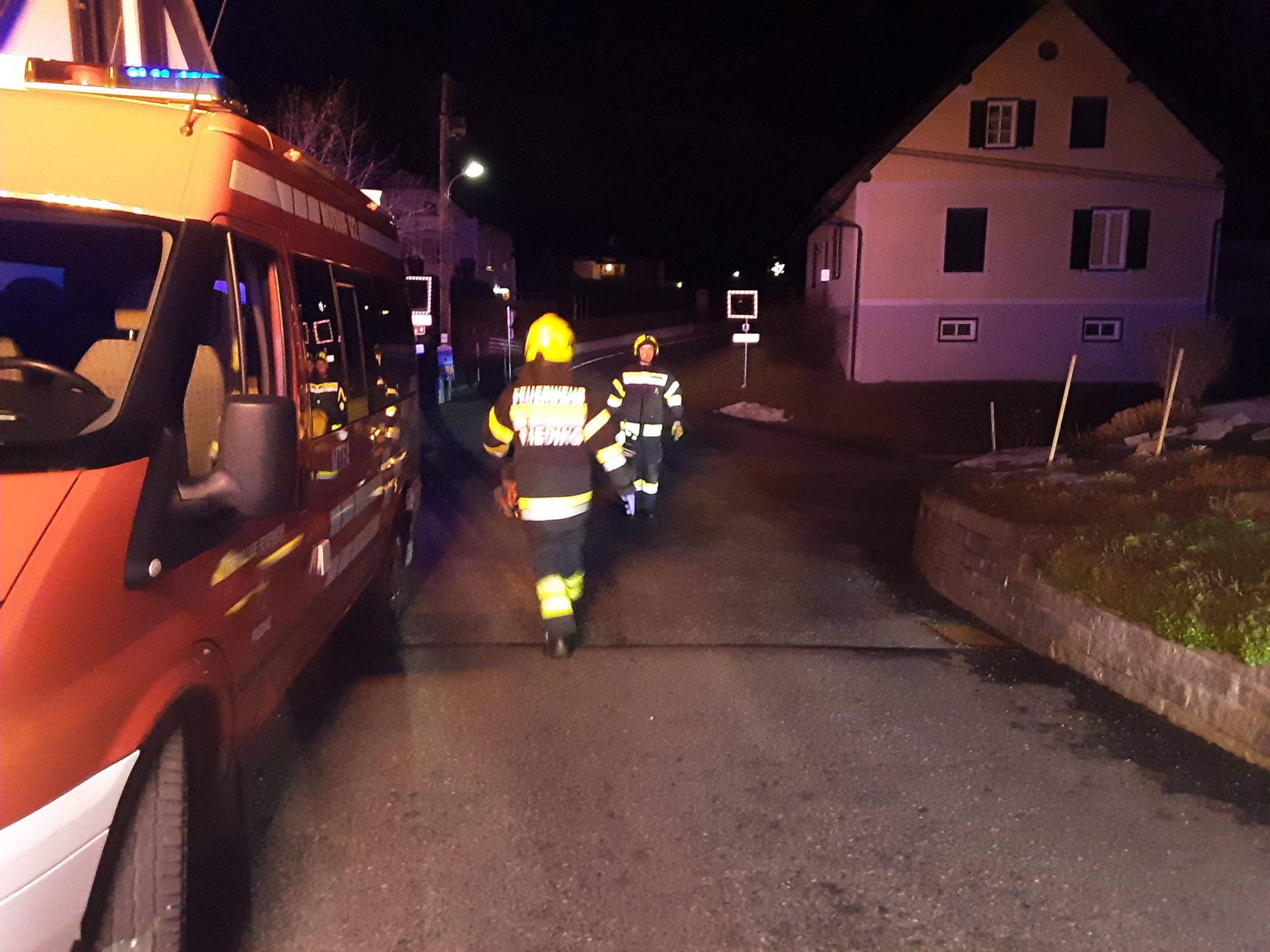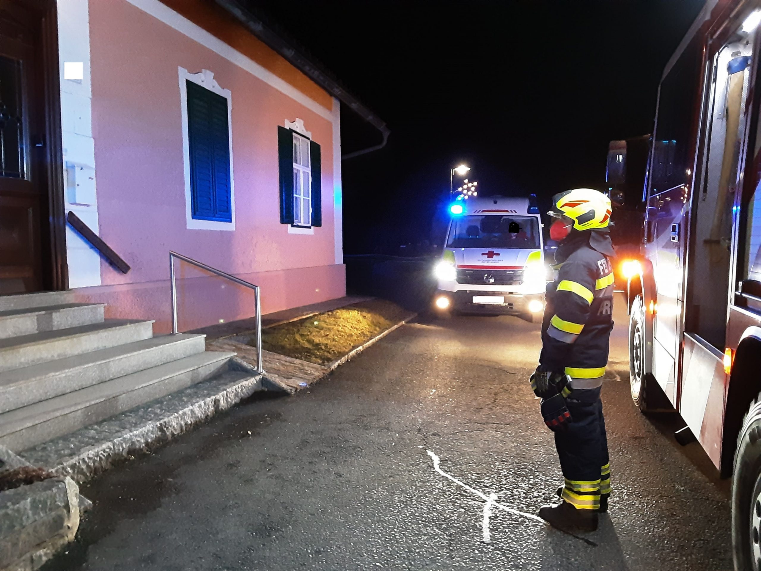 Feuerwehrmänner/frauen öffneten die Haustüre und ermöglichten so den Zutritt für den alarmierten Notarzt und Rettungssanitätern des Roten Kreuzes.